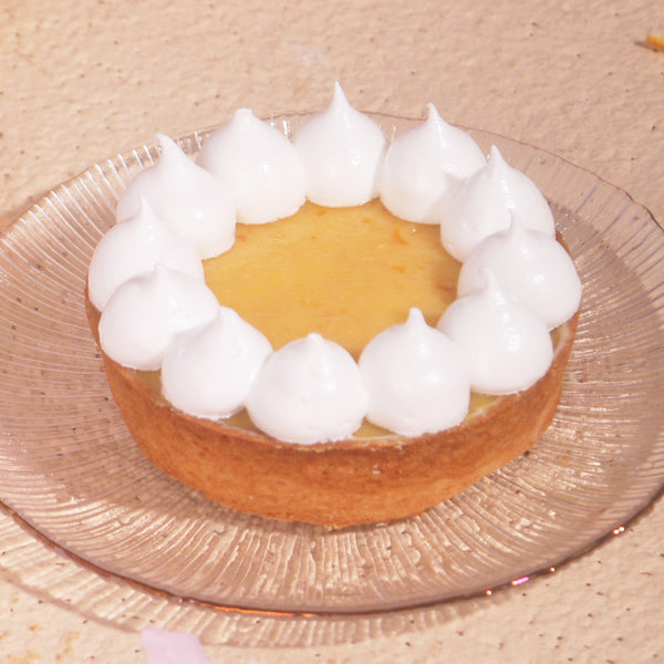 Luscious mandarin curd in a buttery short crust, crowned with meringue.